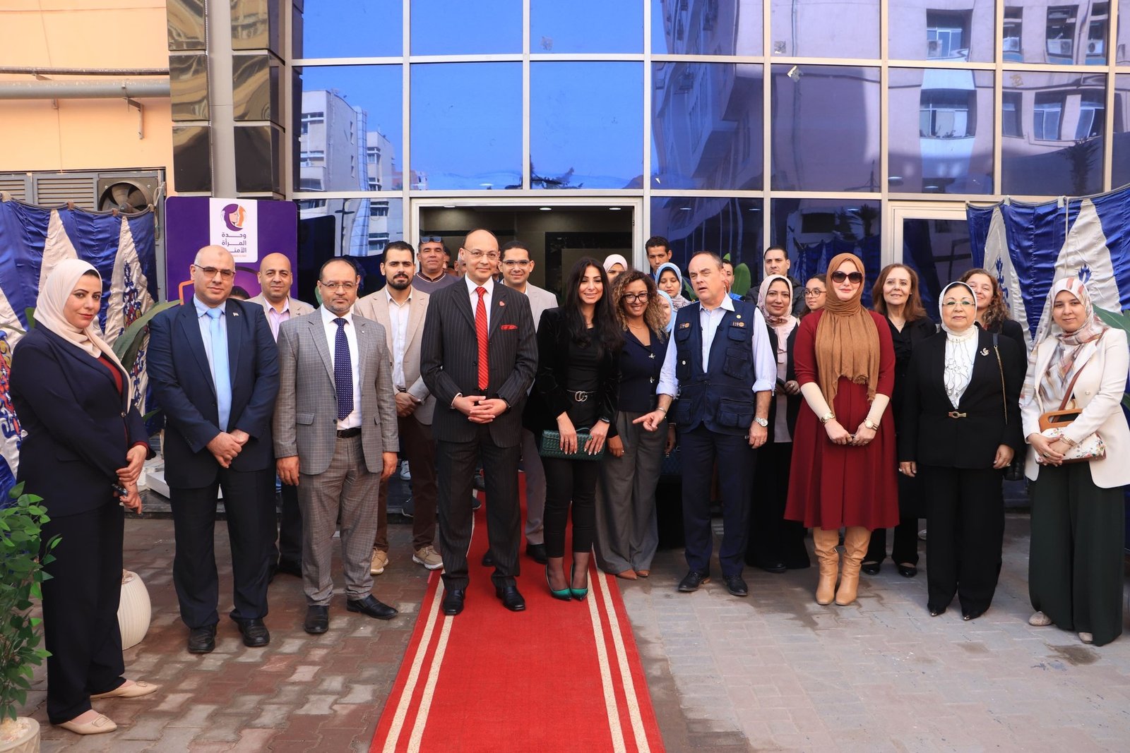 بحضور وفد رفيع المستوى ضم الدكتور إيف سانسيراث ممثل صندوق الأمم المتحدة للسكان في مصر، (UNFPA) والمستشارة مروة بركات ممثلًا عن رئيس المجلس القومي للمرأة، والدكتورة دينا شاكر عضو لجنة الصحة بالمجلس القومي للمرأة، والدكتورة أمل فيليب المستشار الطبي للوحدة التنسيقية لمناهضة العنف ضد المرأة والدكتورة سالي ذهني أخصائي برامج اجتماعية ومسؤول برامج مناهضة العنف ضد المرأة بالصندوق، والسيدة منى سالم المنسق الوطنى للوحدة المركزية لمناهضة العنف ضد المرأة وبحضور الدكتور محمد صبري عمار المدير التنفيذي للمستشفيات الجامعية، والدكتورة رانيا عزمي وكيل الكلية لشئون خدمة المجتمع وتنمية البيئة.