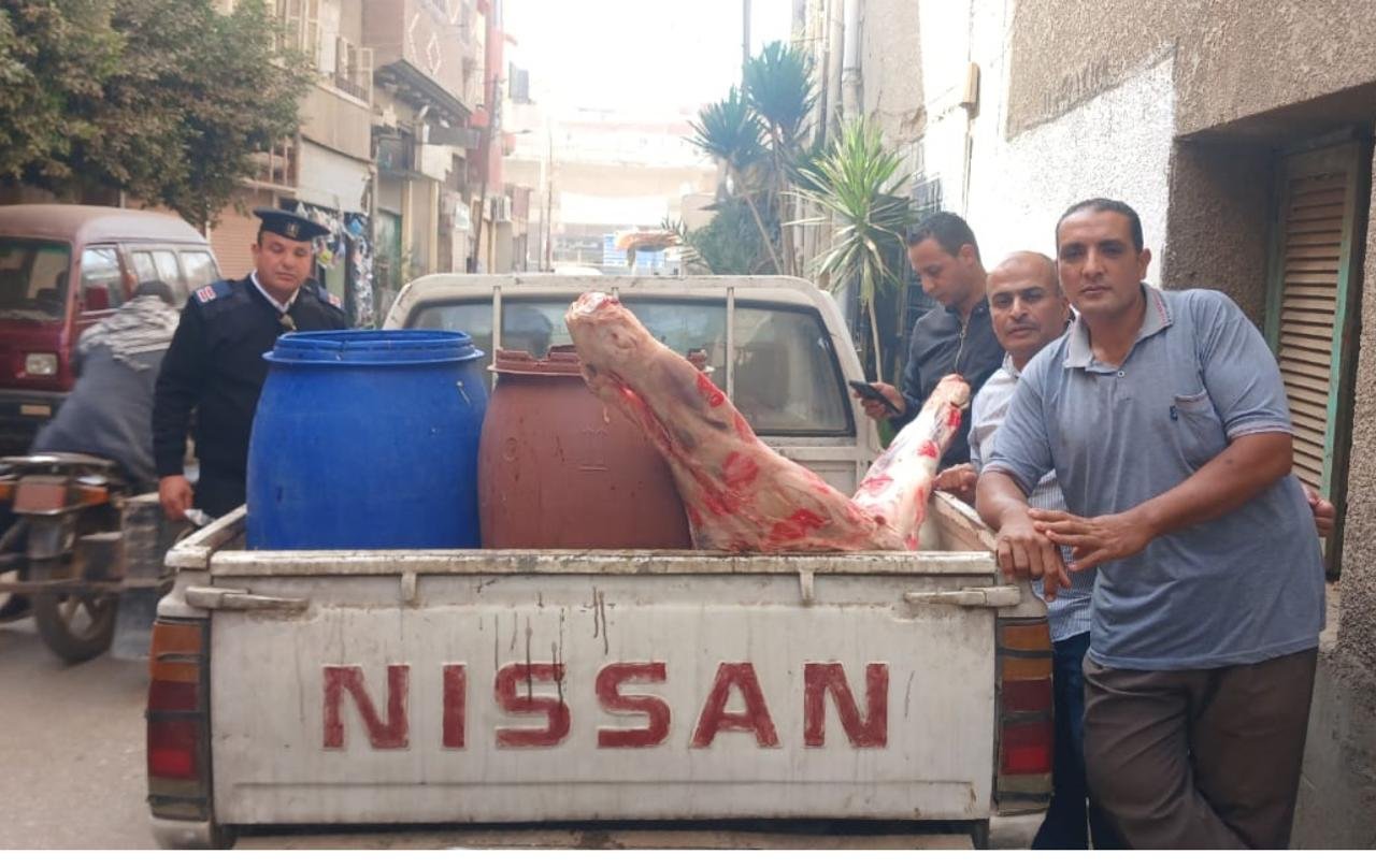 وضُبطت اللحوم المذبوحة خارج المجازر الحكومية بعد رصد تداول كميات غير مطابقة للاشتراطات الصحية داخل أحد المحال، حيث تبيّن عدم وجود أي مستندات تثبت محل الذبح أو سلامة اللحوم، بالمخالفة للقوانين المنظمة لذبح الماشية داخل المجازر الحكومية، وتقرر التحفّظ على المضبوطات لحين فحصها بمعامل وزارة الصحة.