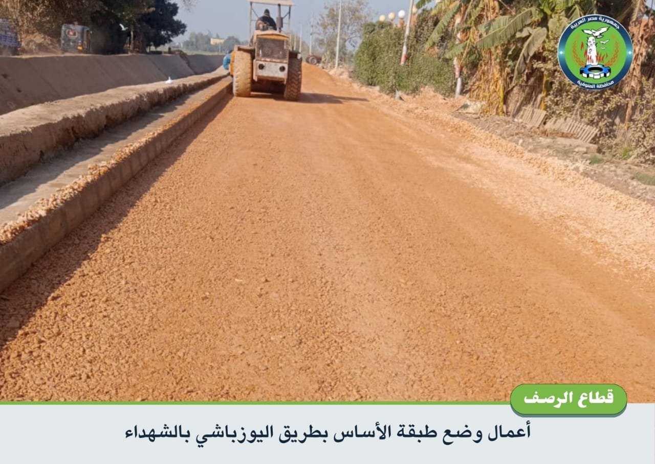 واصلت الوحدات المحلية جهودها في متابعة وتنفيذ خطط الرصف بمختلف مراكز ومدن وقري المحافظة لتطوير ورفع كفاءة الشوارع والطرق الداخلية لتحسين جودة الخدمات المقدمة للمواطنين، حيث قامت الوحدة المحلية لمركز ومدينة الشهداء بمتابعة أعمال الرصف والتطوير بعدد من شوارع المدينة، حيث جاري أعمال وضع طبقة الأساس بطريق اليوزباشي، وفرد طبقة السن بطريق أبو كلس – ابشادي.
