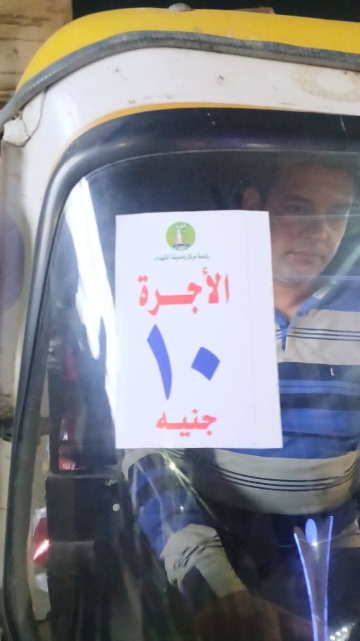 وأكد رئيس المدينة أن الأجرة الرسمية لركوب التوكتوك داخل المدينة هي ١٠ جنيهات فقط، مشددا على ضرورة التزام السائقين بالتسعيرة المقررة، وعدم تقاضي أي مبالغ إضافية.